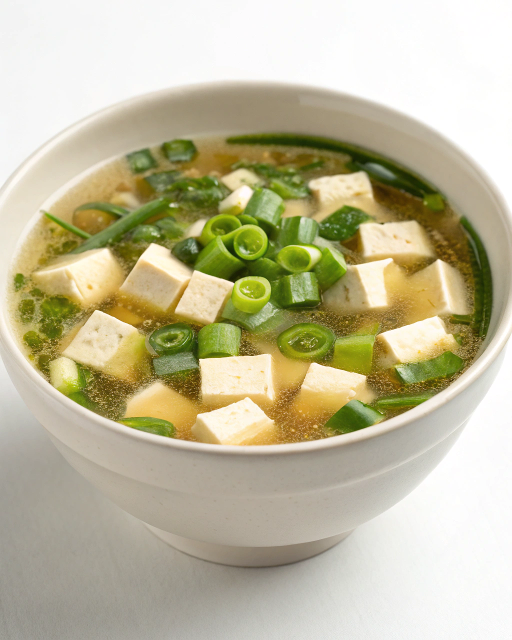 Servez cette soupe dans de petites coupelles profondes, dont la teinte claire fera ressortir le vert doux du wakamé et l’éclat des rondelles d’oignon. Un soupçon de fraîcheur dans la simplicité, à savourer à l’abri d’un instant plus calme, accompagné d’un bol de riz nature ou d’une petite salade japonaise. On profite de chaque gorgée, à la fois tendre et salée, qui invite à la douceur d’un moment suspendu.