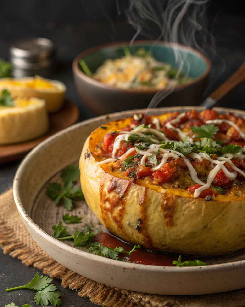 Servez ce gratin encore légèrement tiède, dégageant ses parfums de thym et de chèvre fondu. Il invite à la simplicité : un plat aux couleurs douces, vert pâle et crème, qui se marie bien avec une salade de roquette à l’huile de noix. Quelques tranches de pain grillé, tièdes, complètent idéalement ce repas aux saveurs naturelles, pour un instant de partage tout en douceur.