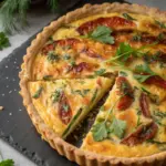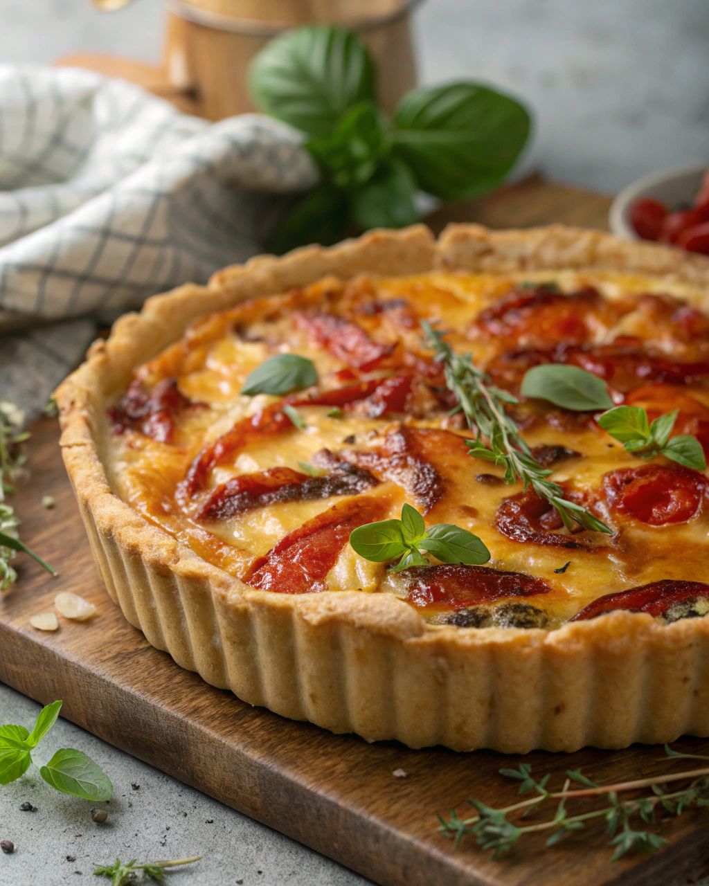 Je me souviens parfaitement de cette après-midi où, déjà un peu crépusculaire, la cuisine s’est remplie du doux parfum de beurre et d’oignons doucement revenus. Le son feutré de la pâte qui s’étale sous mes doigts, légèrement friable, et ce petit craquement quand elle rejoint le fond du moule. Le four réchauffe doucement la maison, apportant une chaleur apaisante tandis que la garniture mijote tranquillement. C’est dans ces instants calmes, entre le temps qui ralentit et les arômes qui promettent la convivialité, que naît cette tarte salée, simple mais réconfortante. Chaque bouchée mêle la douceur fondante d’une pâte maison à la rondeur des légumes et du fromage, des textures qui dansent ensemble sans jamais lasser. C’est un plat à la fois humble et rassurant, parfait pour réunir ceux qu’on aime autour d’une table sans prétention.